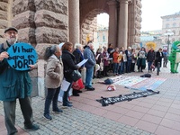 Den fantastiska XR-KÖREN sjunger vackra sånger på sin ordinarie tid och plats. De är ganska många och sjunger med glädje och stuns. De är ihärdiga och fantastiska människor som igen och igen sjunger för politikerna om vikten att fatta vettiga klimatbeslut. Det sker inga polisingripanden eller poliskontakter alls med syfte att mota bort kören denna fredag. Det är vackert, roligt och svängigt att se.