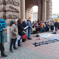 Den fantastiska XR-KÖREN sjunger vackra sånger på sin ordinarie tid och plats. De är ganska många och sjunger med glädje och stuns. De är ihärdiga och fantastiska människor som igen och igen sjunger för politikerna om vikten att fatta vettiga klimatbeslut. Det sker inga polisingripanden eller poliskontakter alls med syfte att mota bort kören denna fredag. Det är vackert, roligt och svängigt att se.
