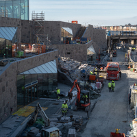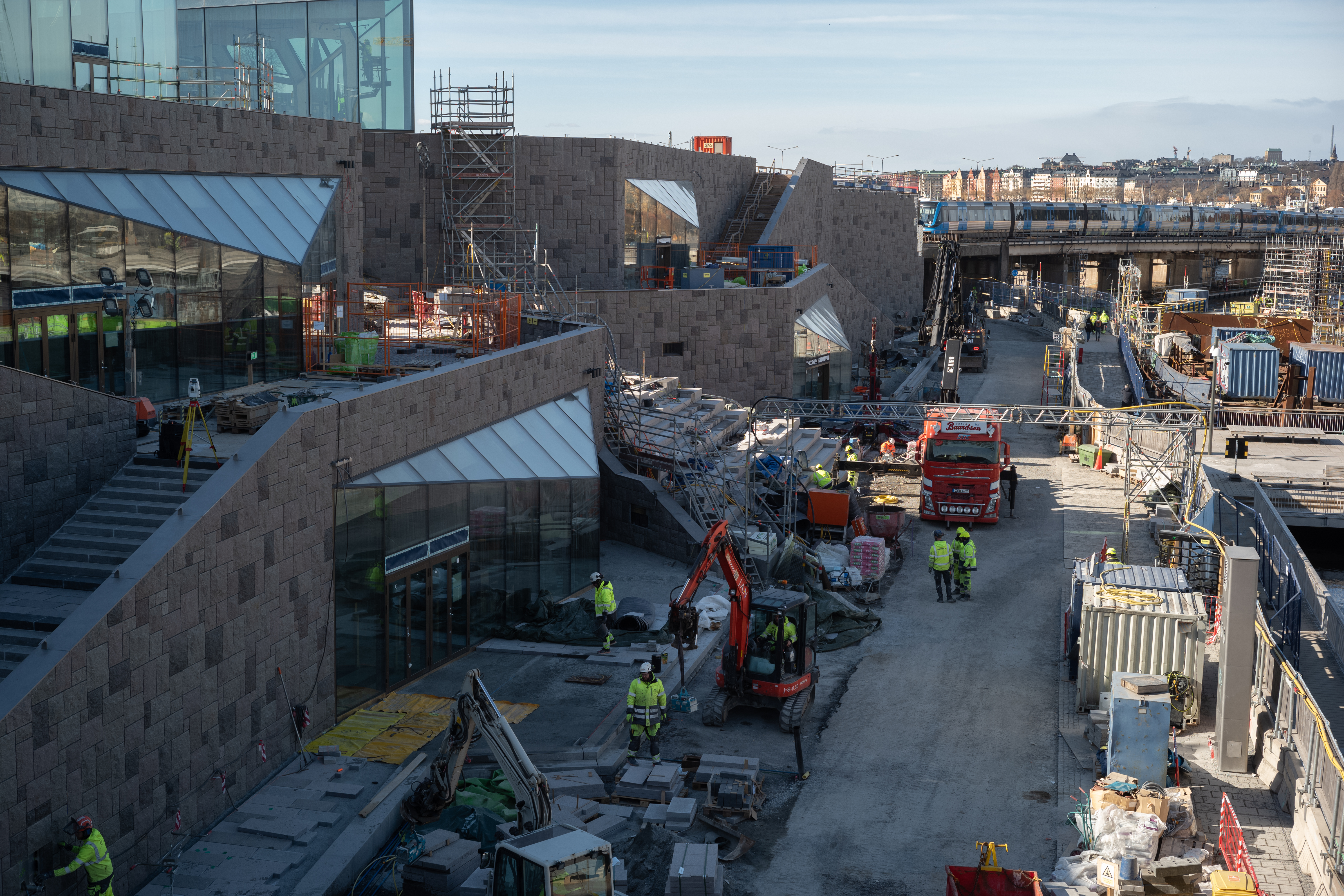- sv Bygget av den nya Slussen börjar bli klart. Så här såg det ut i mars 2025.