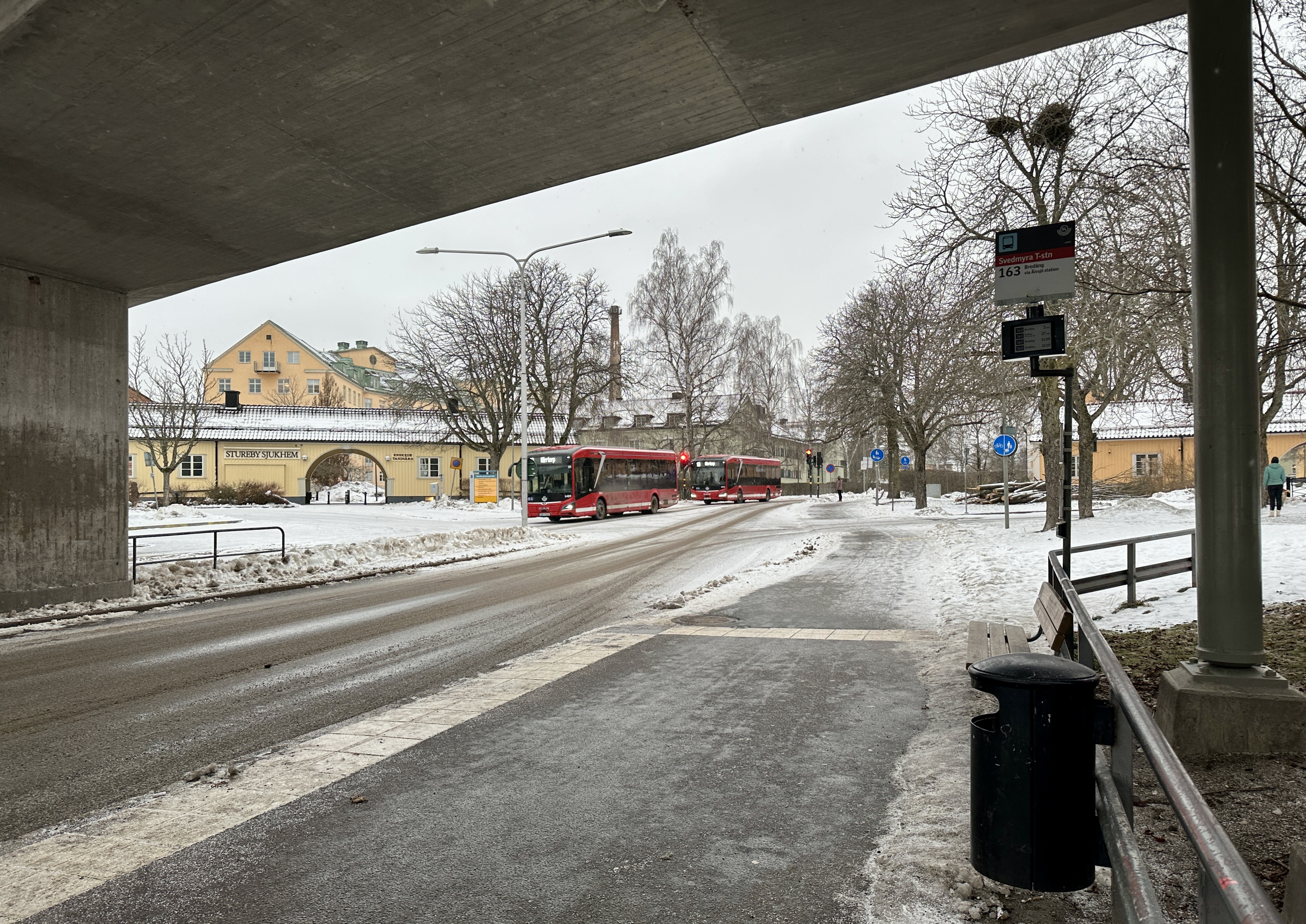 Det blir bara värre och värre med kollektivtrafiken för varje år som går, speciellt också när snön kommer. Man får vara glad om det ens dyker upp en buss, eller som här så kommer det två.