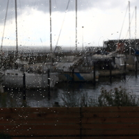 - Sista dagen i Skåne tillbringade vi lunchen i hamnen i Höganäs och det var tur att det fanns både tak och förnster vid vårt bord.