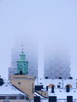 Tornen På en av många strövtåg runt i Stockholm hamnade på Kungsholmen, Kristineberg en kylslagen och fuktig decemberdag. De två tornen har nu varit på plats ett tag men skapar ständigt kontraster mellan det gamla och sig själva. Framförallt ur olika vinklar. Här hänger molnen lågt och får den nya tiden att försvinna med den lägre äldre syns klart och tydligt.