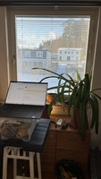 Sol i november Kanske den enda solglimten under hela november 2023. Jobbar hemifrån så jag kunde arrangera så jag såg ut. Arrangemanget bestod av piedestal, förvaringslåda och verktygsväska.