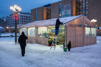 Jul på Östermalmstorg Julgranar och fina kransar till försäljning på Östermalmstorg.