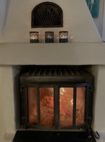 Värme i stugan Snö och kyla utomhus men inne i stugan är brasan igång och värmer gott.