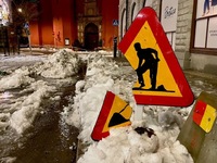 Norrmalm Nu är det full fart med takskottning i stan och visslorna går varma i vinterkylan