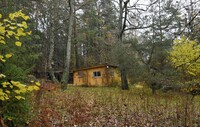 Stugan i gläntan En av flera små stugor i en liten glänta invid Gustavsbergsleden. Snart kommer de vara borta.