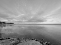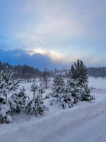 Vinterlandskap Solen passar på att titta fram i några sekunder innan snön vräker ner i Roslagen.