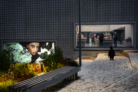 Julstämning vid Bofill Julhjärtan uppsatta vid Bofills båge vid Medborgarplatsen