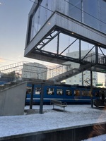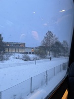 Tibble sportcenter Tidig morgon på roslagsbanan in till Åva med utsikt på gamla simhallen.