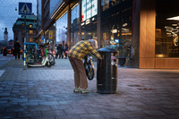Pantinsamling En äldre kvinna samlar pantburkar utanför Gallerian.