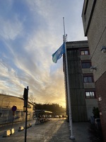 Påväg till skolan Solen är påväg upp och jag är påväg till skolan (Åva gymnasium).