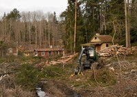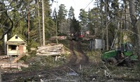 Skog och stugor ska bort Skogen huggs ner och gammal bebyggelse rivs för att ge plats åt nya större hus.
