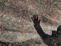 Runsten U232 Gällsta Ett hej mellan årtusendena. Aldrig kunde väl denne runristare ana att hans skapelse skulle bli skojad med på det viset tusen år senare.