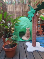 Katt semester På verandan inne i stan