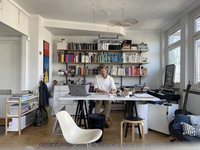 På designkontoret Bilden föreställer Oscar Liedgren, grafisk designer, som jobbar sin första dag efter semestern på sin designstudio på Kungsgatan 44, 5 trappor.