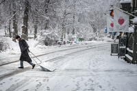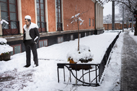 Snöskottning utanför Lilla Hasselbacken Snöskottning utanför Lilla Hasselbacken när den första snösmockan slog till.