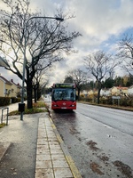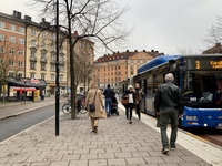 Första snön I dag kom den första snön för vintern. Buss 67 kör iväg från hållplatsen vid Liljevalchs.
