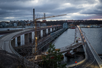 Nybygge på Kungsvägen Byggarbetare går på byggställningen på kungsvägen
