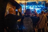 Saxon på Grönan Ett par förevigar Saxonkonserten på Gröna lund med sina mobiltelefoner.