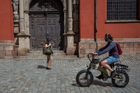 S:t Jacobs kyrka S:t Jacobs kyrka började byggas 1580. 442 år senare svischar en man förbi på en elcykel.