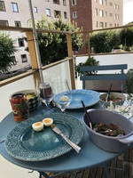 Sommarmiddag Matjessill och färskpotatis . Middag på balkongen .