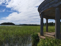 Fågelskådning Torn för fågelskådning nära Barkarby. Några skrattmåsar i närheten och det är 31 grader c. Svag bris.