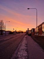Soluppgång i Sollentuna En kall morgon med solen speglad som guld mot polishuset