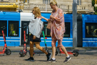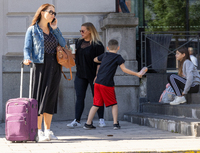 Längtan Föräldrar som står utanför staketet och tittar in på barnens skolavslutning i Corona-tider. -