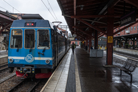 Östra station Ett tåg på Roslagsbanan står inne på Östra station.