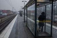 Väntan i Täby kyrkby En person väntar på tåget på Täby kyrkby station