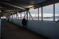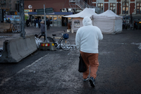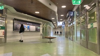 Slussen En man i en lurvig jacka går mot Slussens T-banestation