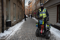 Segwaypolisen "Segwaypolisen" Mikael Ericson patrullerar på Svartmangatan i Gamla stan samtidigt som julmarknaden pågår på Stortorget intill.