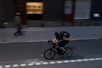 Tempo på Hornsgatan En lättklädd man cyklar på Hornsgatan i november