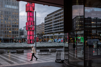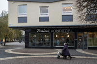 Pallas i Vällingby En kvinna med rollator går förbi Pallas konditori i Vällingby centrum.
