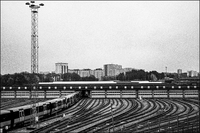 Vällingby t-banedepå Ett tunnelbanetåg kör in i Vällingby t-banedepå
