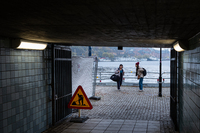 Turister på villovägar Två turister utanför Gamla stans tunnelbanestation.