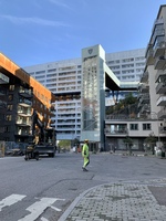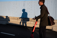 Sparkcykel vid Slussen En man åker elsparkcykel vid Slussen under ombyggnaden