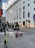 Hämtning Jens och Vince Waldenström (barnet) på väg för att hämta storebror från skolan.