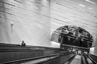 Stockholms central En kvinna åker i en av rulltrapporna från pendeltågen på Stockholms central