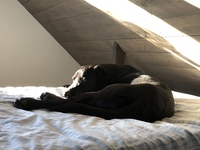 Solens första strålar Jag tittar på honom och tänker att jag aldrig kunde tänka mig att jag skulle känna en sådan överväldigande tacksamhet och kärlek för en hund. Han kom till oss som valp tidig höst 2019. Vi hoppades att han skulle visa sig vara lämpad att starta utbildningen till att bli en assistanshund. Ett år senare gjorde vi lämplighetstest och vi klarade det! Jag satt i bilen med min bästa vän på väg hem från Eskilstuna och grät lyckliga tårar med familjen på FaceTime medan jag framförde den bästa nyheten. I december 2020 gjorde vi inprovning i offentlig miljö och han, vår älskade lilla kille var inte så liten längre. Han fick det gula täcket med texten: ”Assistanshund i utbildning”. Vi fick en certifierad instruktör och startade utbildningen via Svenska Service- och Signalundsförbundet. Tänk att han ska bli en arbetande hund och också vår älskade familjemedlem. Ett stöd och en trygg hamn för vår dotter. En hund som kan bidra med så mycket till en individ. Att få någon att bryta den sociala isoleringen, att orka gå i skolan. En hund som är ett hjälpmedel men också en enorm kärlek. Vår vardag blev bättre tack vare han, den svarta Labradoren. Vi visste det inte då, den dagen i september för snart två år sedan men någonstans långt inne i min själ kände jag att han var väldigt speciell. Då, nu och för alltid.