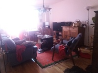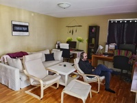 Vardagsrum Flyttade "hemifrån" när barnen flyttat ut. Första alldeles egna boendet på 30 år. Tar tid att få upp tavlor uppenbarligen, men trivs med min egen röra. I taket hänger en lampa som bott hos min morfars syster i liten söt etta på Torsgatan. Den har sällskap av några stolar och ett linneskåp som bott i Rosenbad, som var bank innan det var regeringskansli och där min gammelfarfar var vaktmästare med tjänstebostad. Inte precis miokatalog, men det är nog det jag gillar allra mest med mitt hem. Vardagsrummet tjänstgör som plats att samla familjen, slappa, läsa, äta middag, spela spel, gosa med katterna. Inte ett finrum, utan verkligen ett var dags rum.