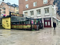 Nedmontering av den tillfälliga saluhallen på Ösyermalmstorg Efter flera år är det dags: den tillfälliga saluhallen monteras äntligen ner! Äntligen blir torget fritt igen och vi kommer kunna se den nyrenoverade saluhallen i sin prakt igen.