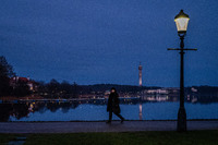 Joggare på Lejonslätten, Djurgården En joggare på Lejonslätten på Djurgården med Kaknästornet i bakgrunden