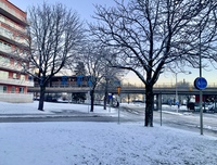 Älvsjö torg Äntligen fredag, snöigt och ljust, det kan inte bli bättre!