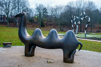 Lejonslätten på Djurgården En kvinna promenerar på Lejonslätten på Djurgården med Kaknästornet i bakgrunden