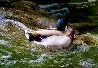 Änderna tar sig en morgonpromenad då det är lugnt i trafiken på Gulddragargränd i Vällingby. Samtrans omsorgstrafik rullstolstaxi passerar i bakgrunden med Orange gul logga på sidan av bilen. Änderna går mot Hässelby slottspark.