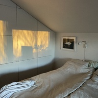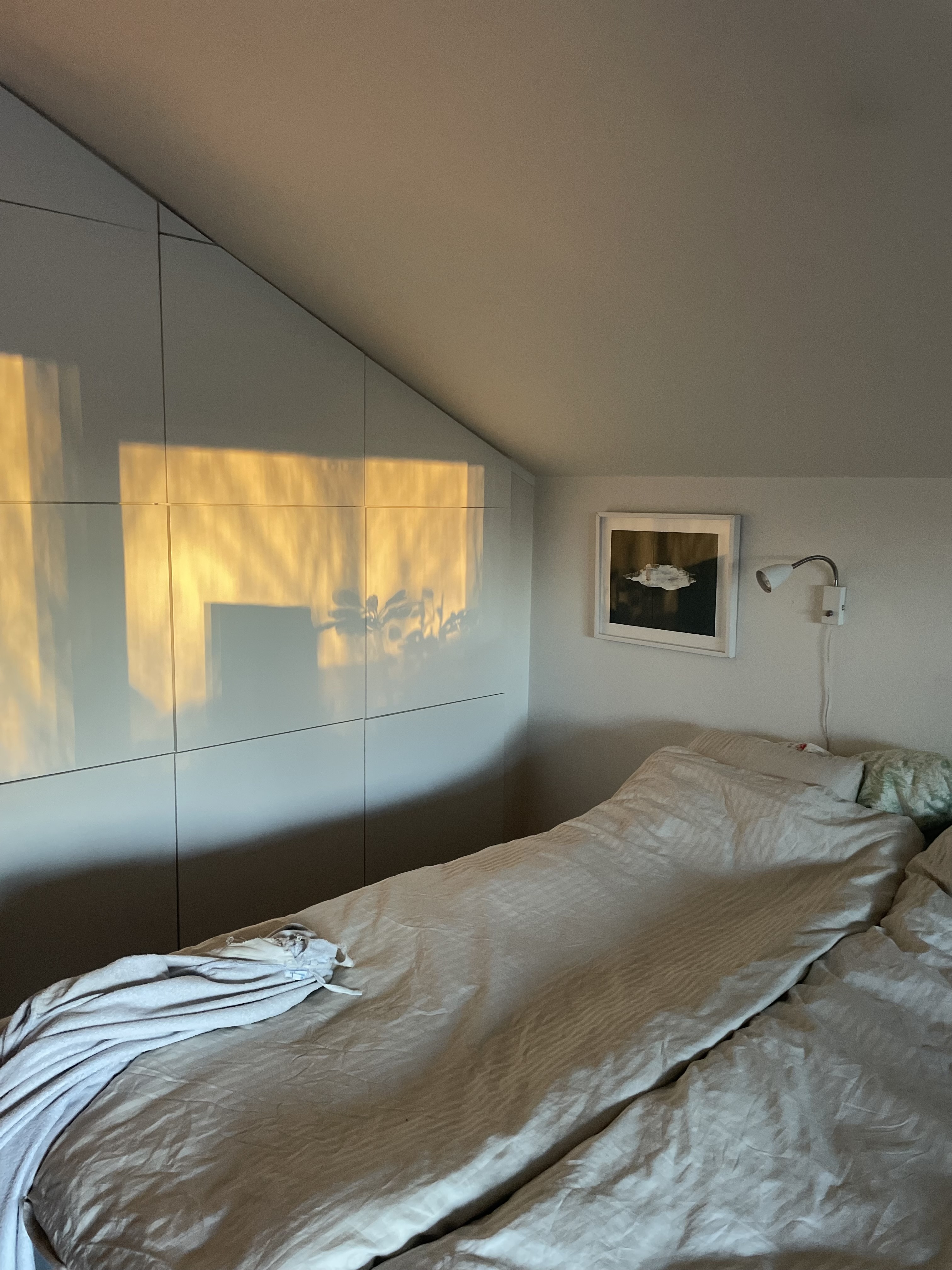 - sv Det här är en bild tagen från ett sovrum, jag fastnade för ljuset på väggen