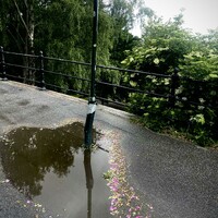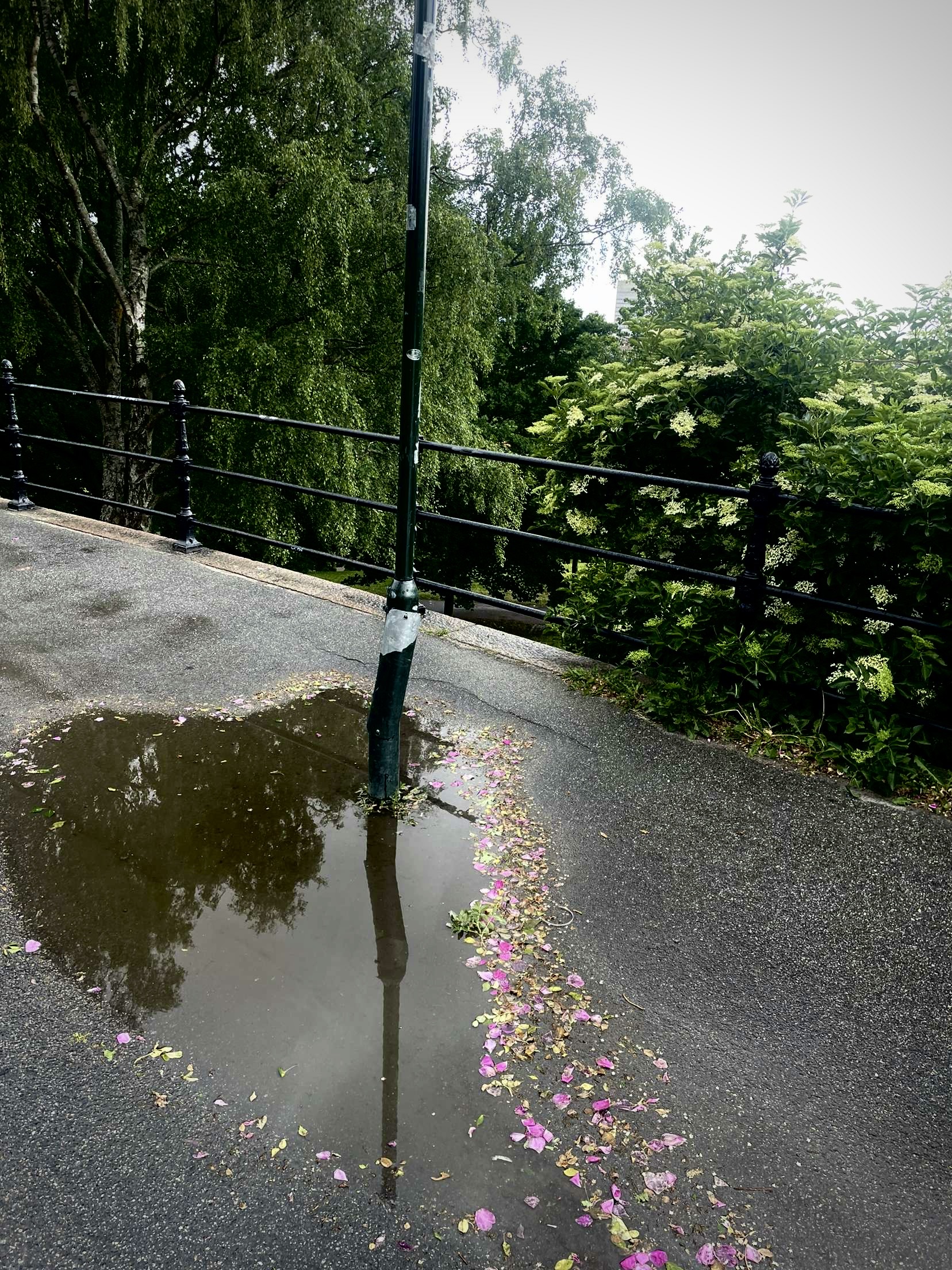 - sv jag och mina vänner var utanför Sofia kyrkan och jag såg den här fina ljusstolpen och vattenpölen nere med massor av blad runt om och behövde bara ta en bild :P