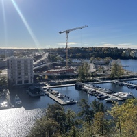 - sv Staden växer . Vid vattnet men också nära essingeleden.